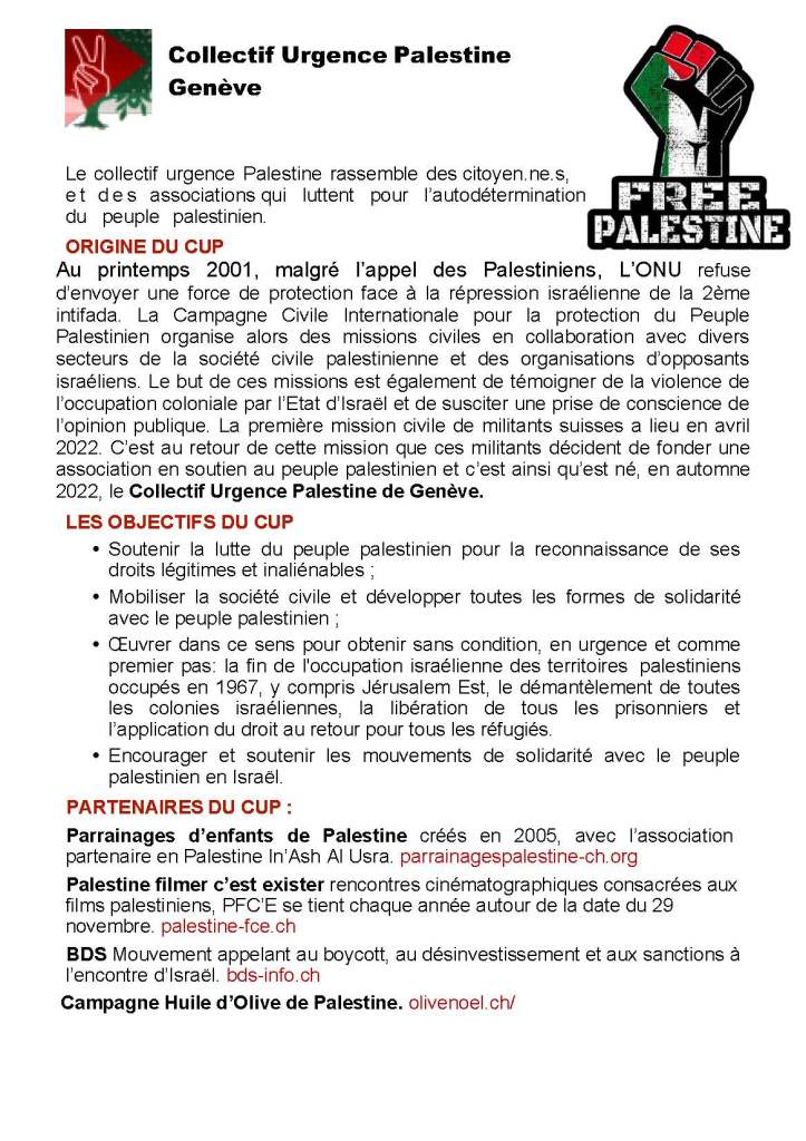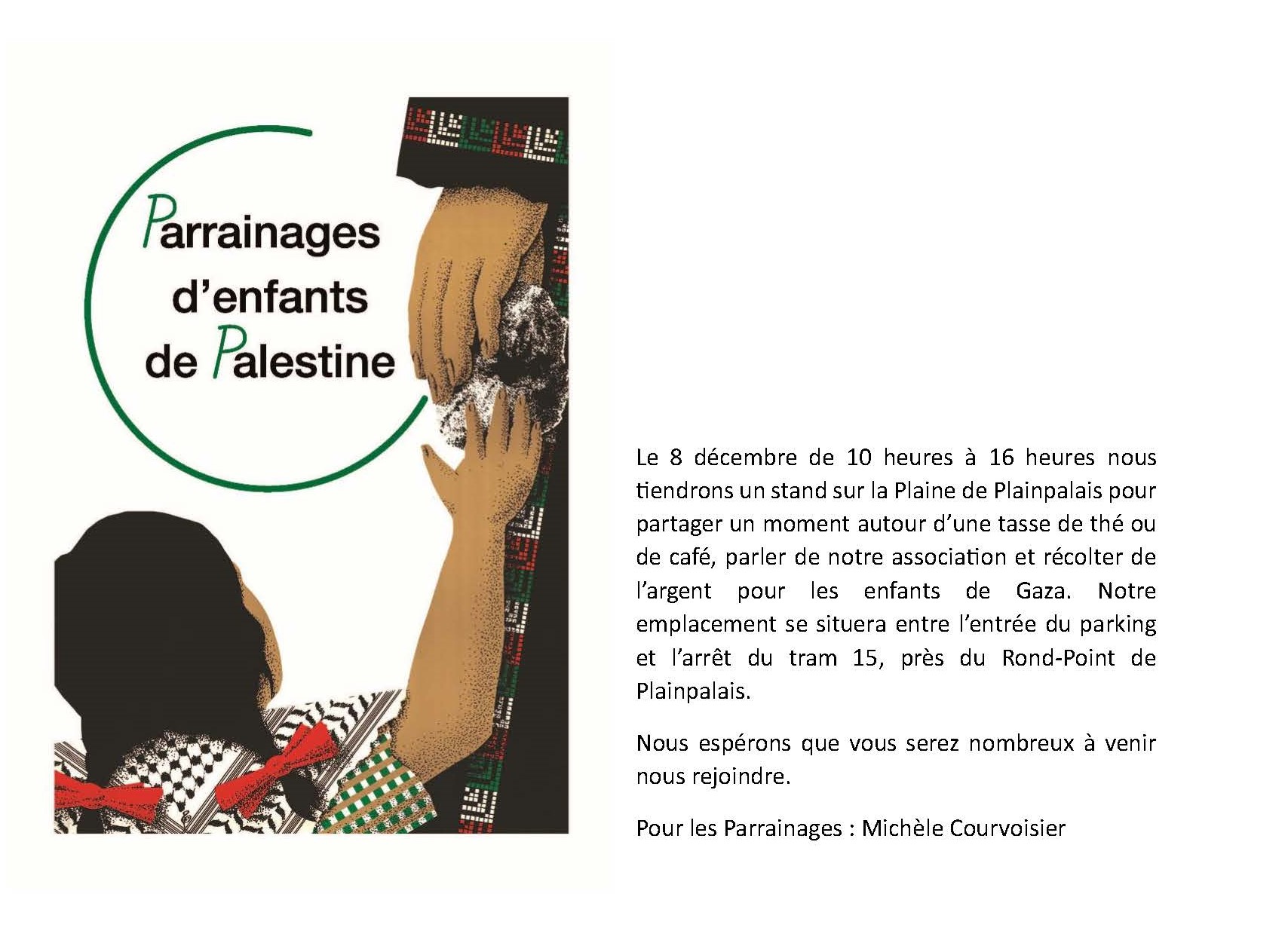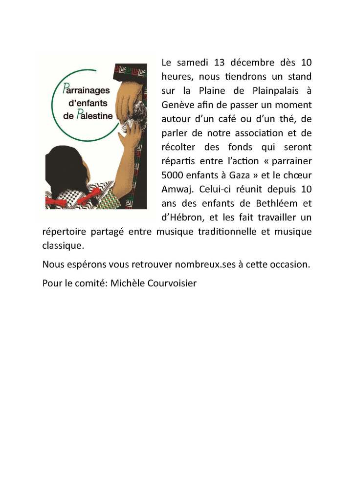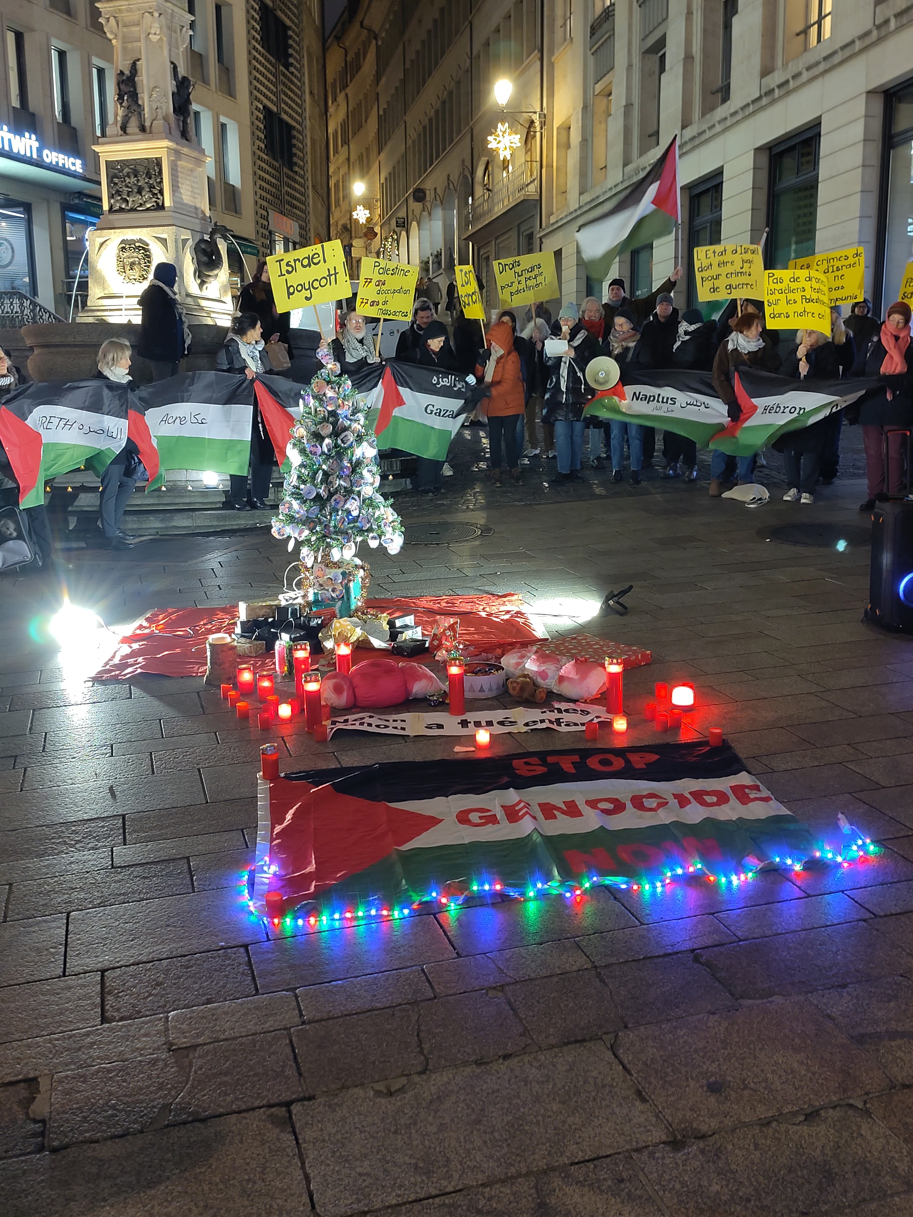 Mardi 23 décembre, place de la Fontaine, Genève; Noël de solidarité avec les enfants de Gaza